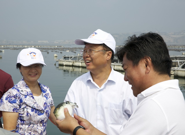 9月14日,國家食藥總局滕佳材副局長等領(lǐng)導(dǎo)視察參觀完天正河鲀大李家海上養(yǎng)殖基地后,在大李家養(yǎng)殖場會議室聽取了天正集團(tuán)董事長孟雪松的匯報,并作出重要指示。